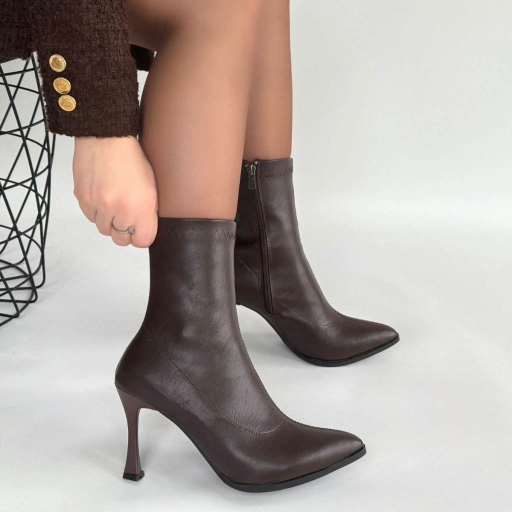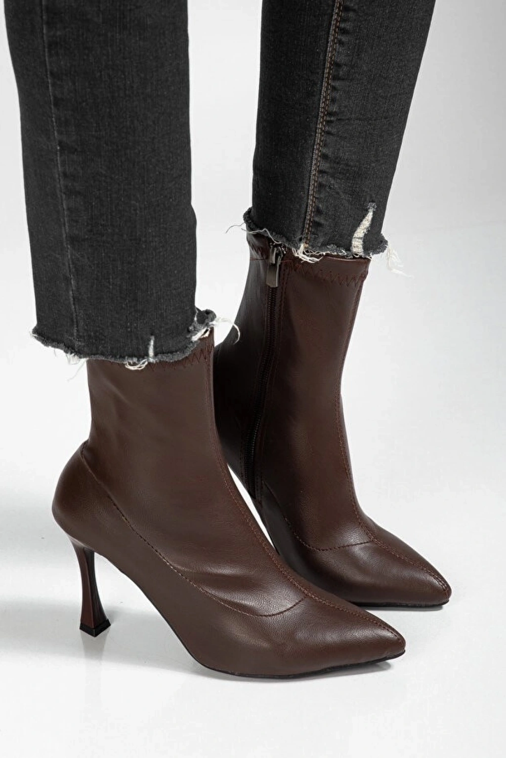 Orjen Kahverengi Cilt Streç Topuklu Bot