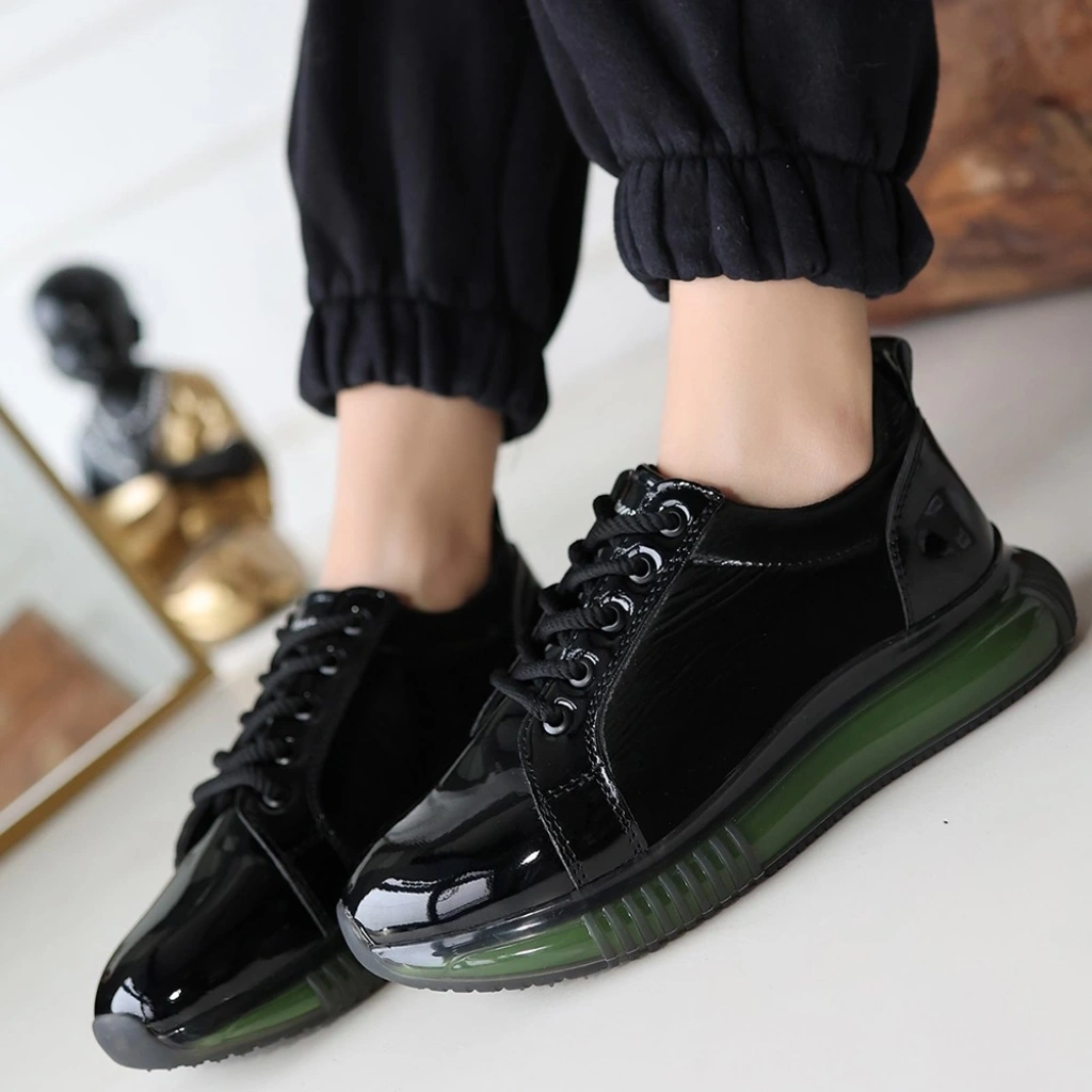Piona Siyah Rugan Yeşil Tabanlı Spor Ayakkabı