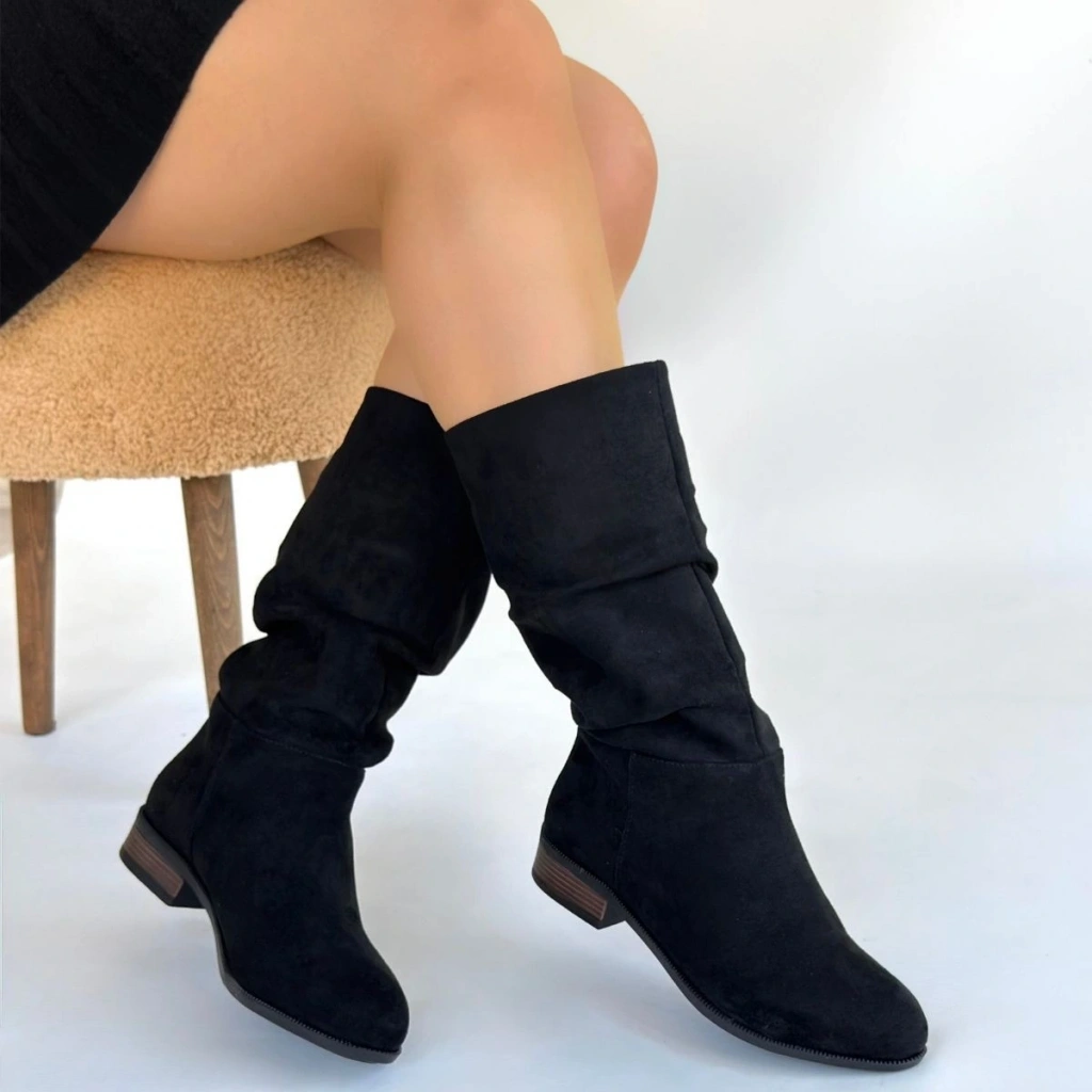 Pem Plod Siyah Süet Çizme