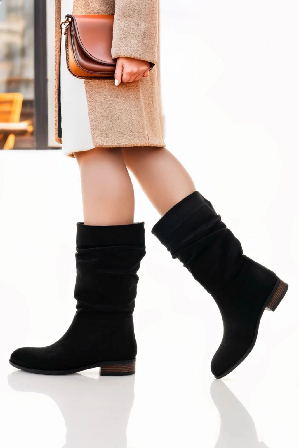 Detay: Topuklu Diz Altı Körüklü Çizme