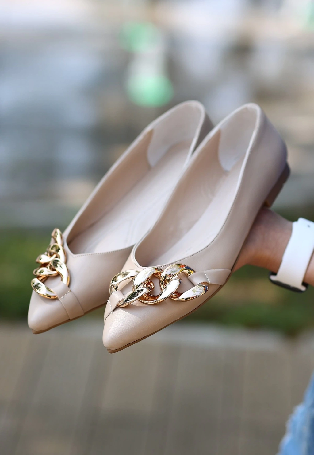 Popi Nude Cilt Zincirli Babet Ayakkabı