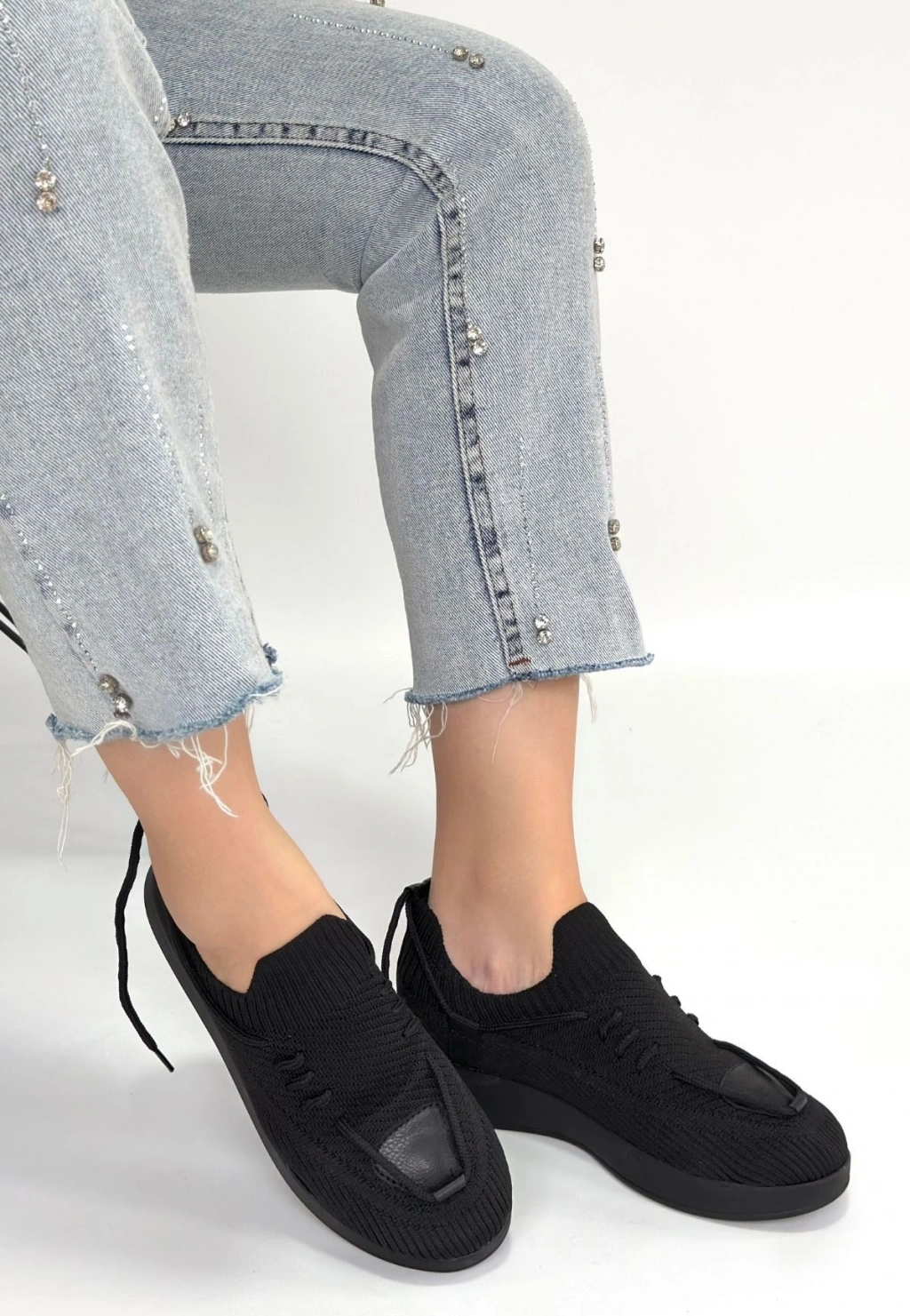 Renji Siyah Triko Bağcıklı Spor Ayakkabı