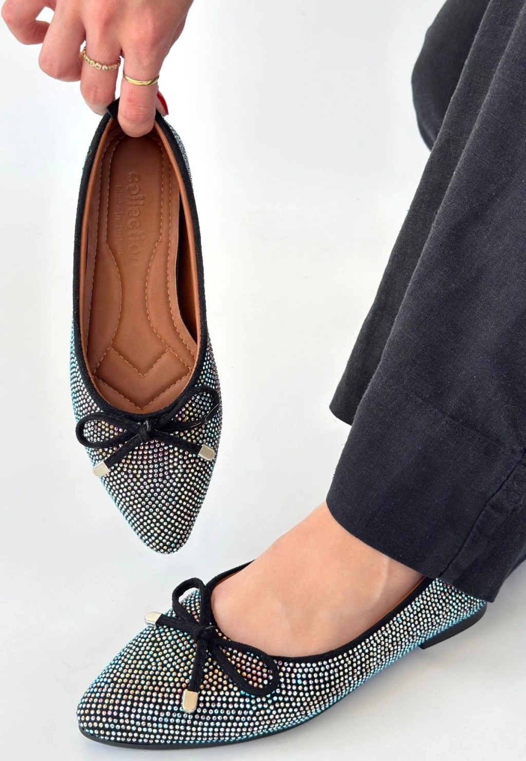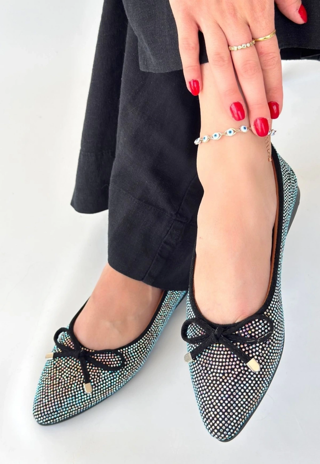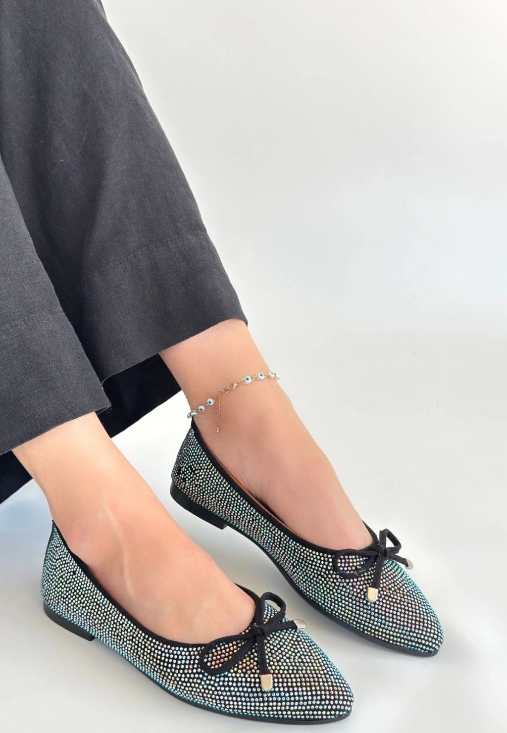 Sarra Siyah Saten İşlemeli Babet Ayakkabı