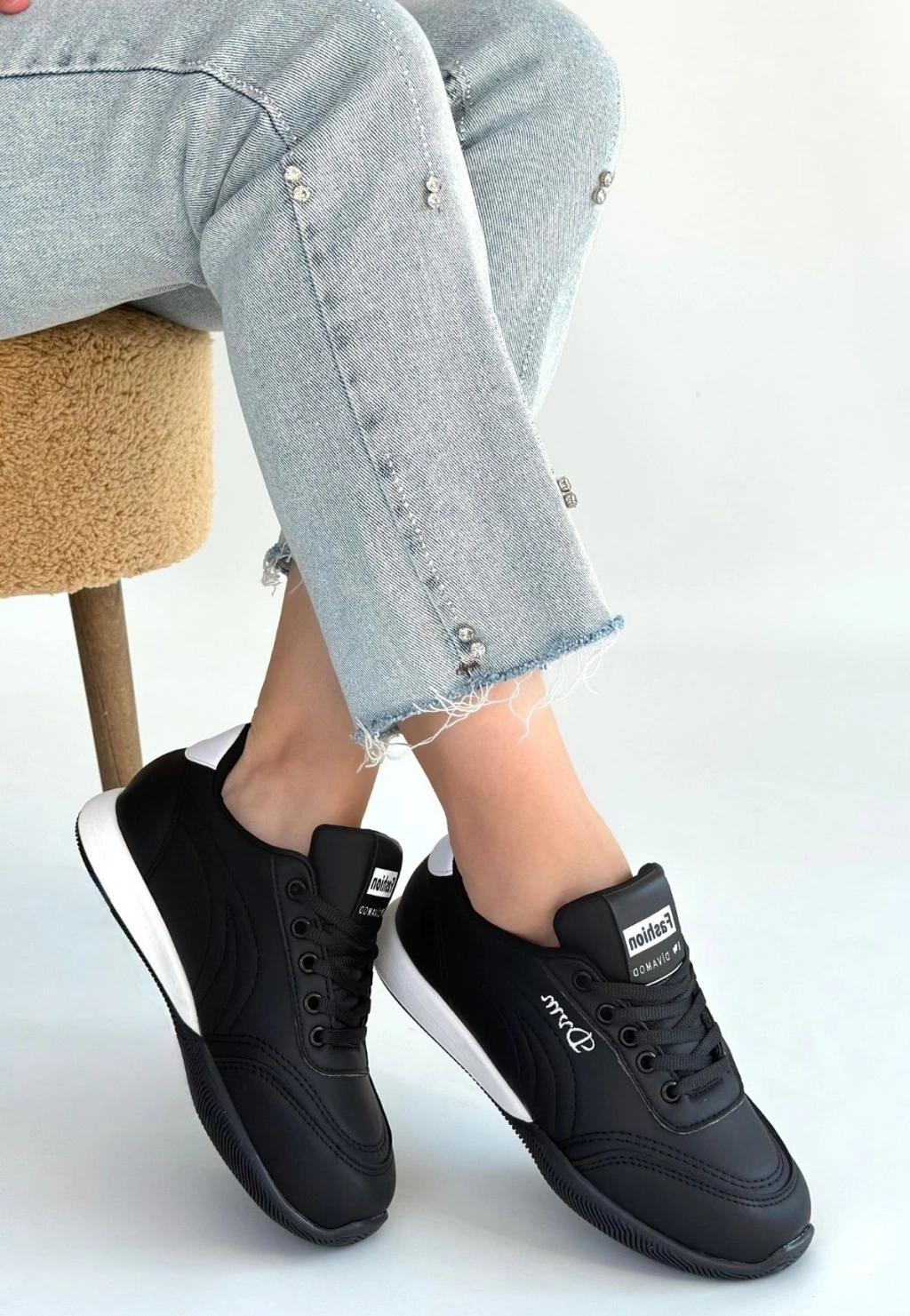 Tawen Siyah Cilt Bağcıklı Spor Ayakkabı