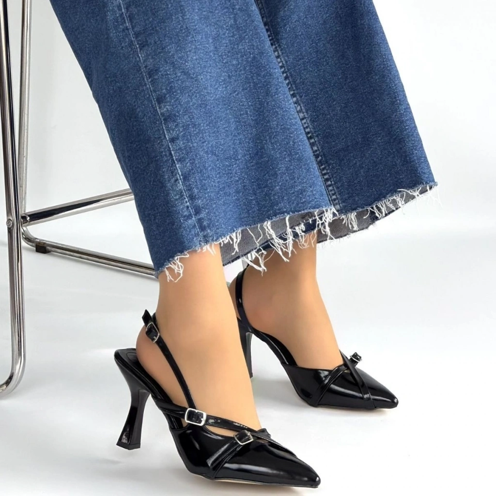 Tetti Siyah Rugan Topuklu Ayakkabı