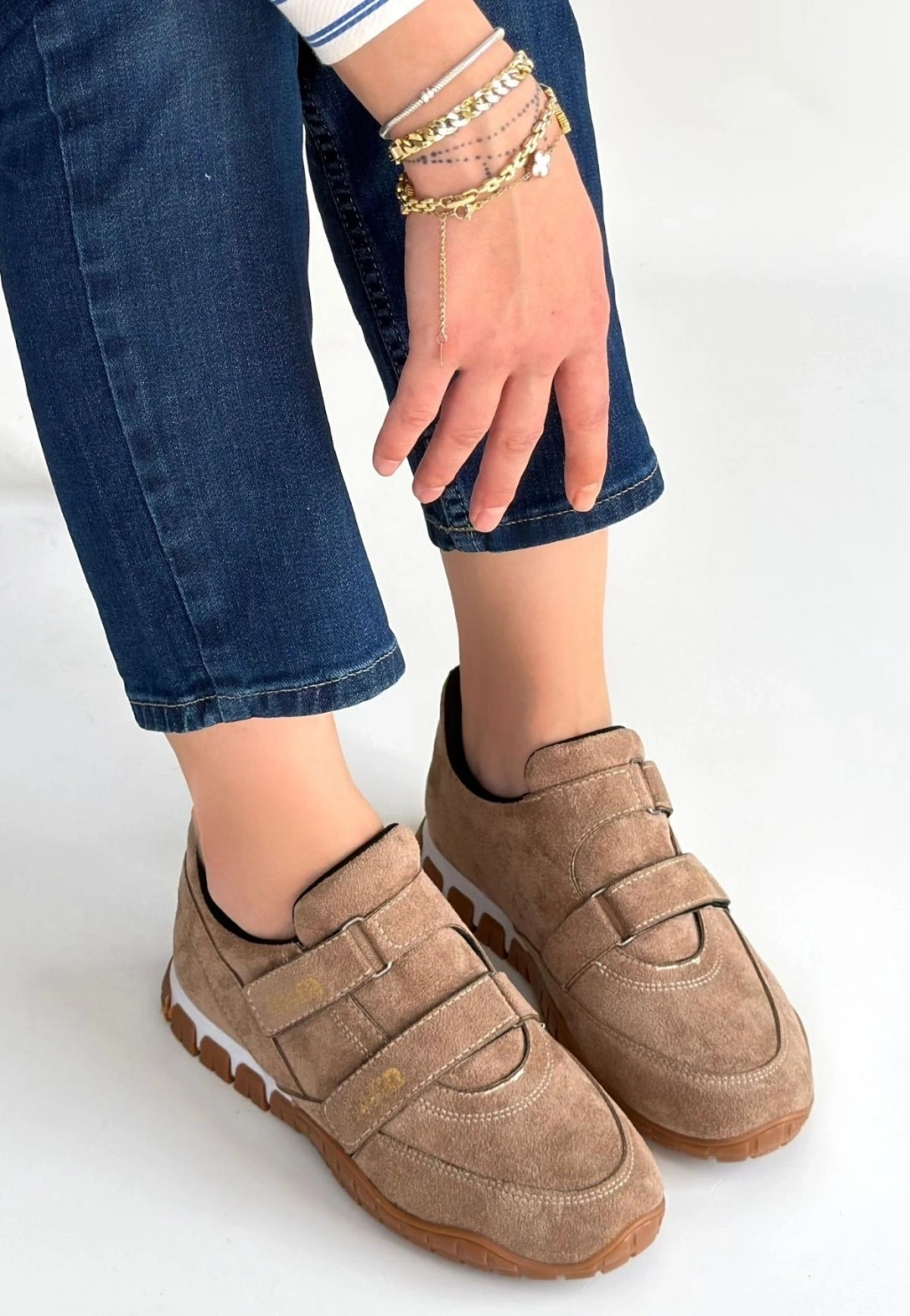 Tunga Bej Süet Cırt Cırtlı Spor Ayakkabı
