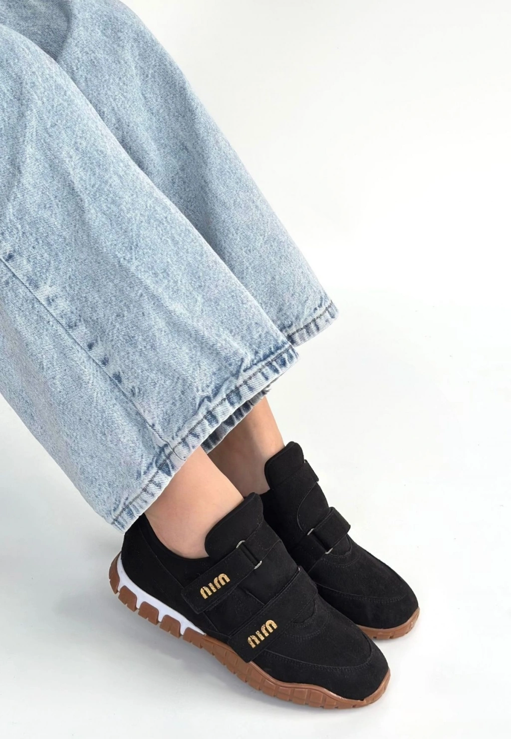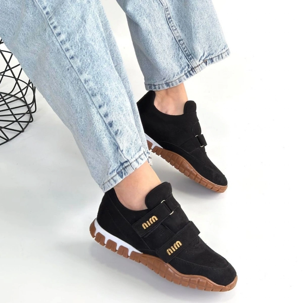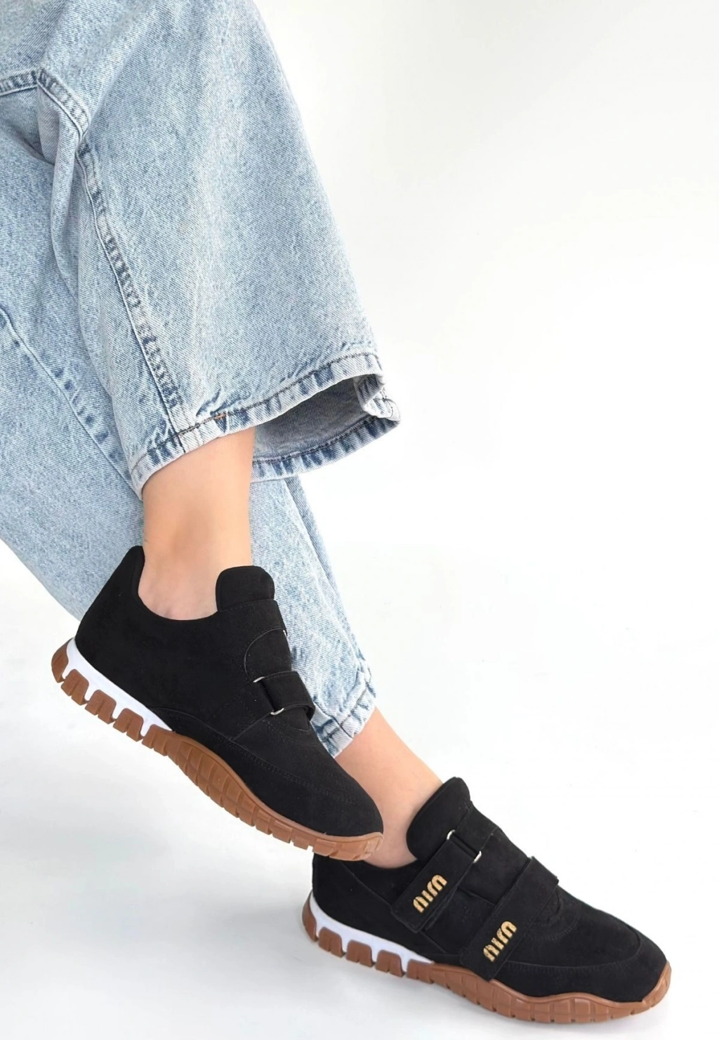 Tunga Siyah Süet Cırt Cırtlı Spor Ayakkabı