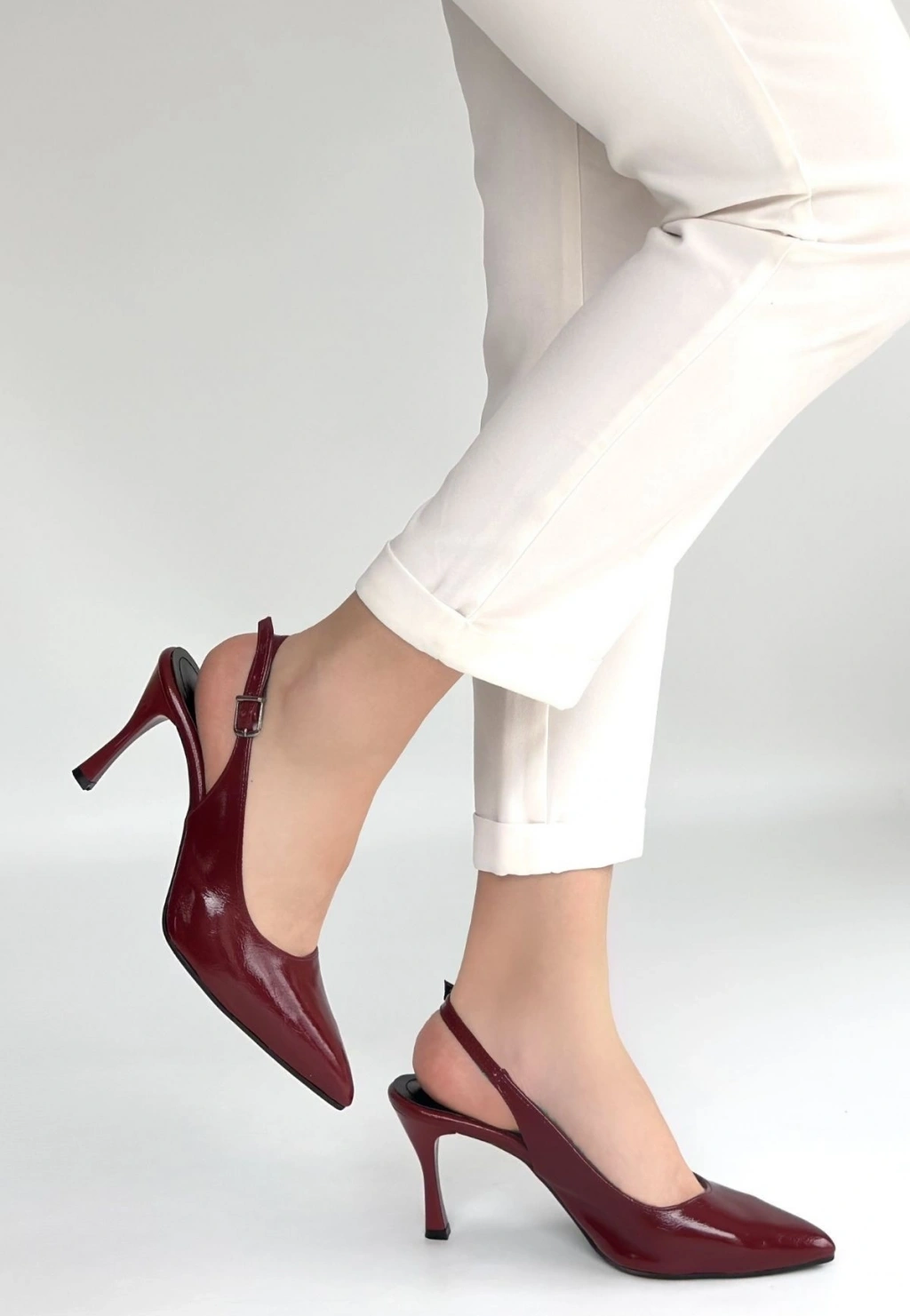 Uster Bordo Rugan Topuklu Ayakkabı