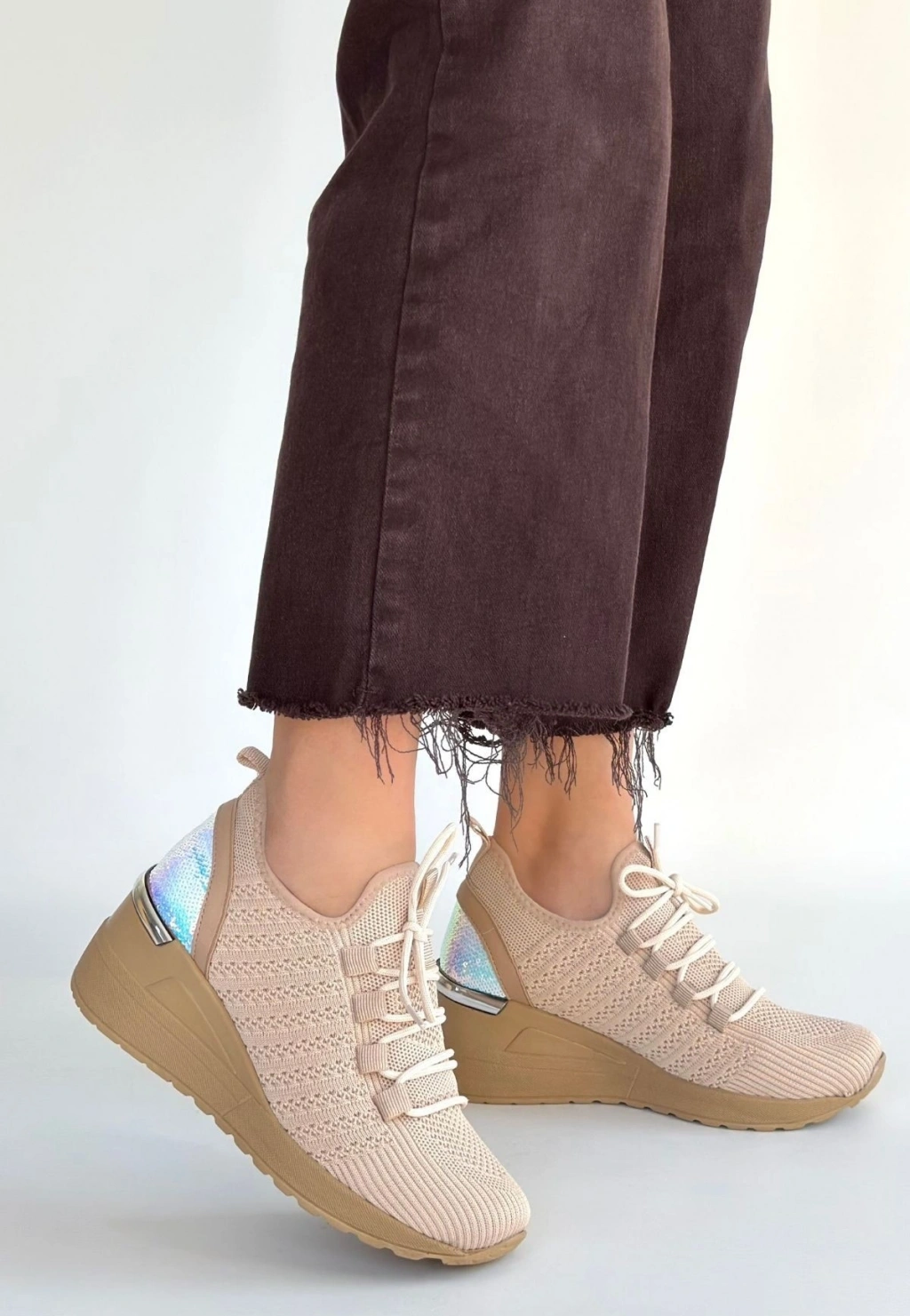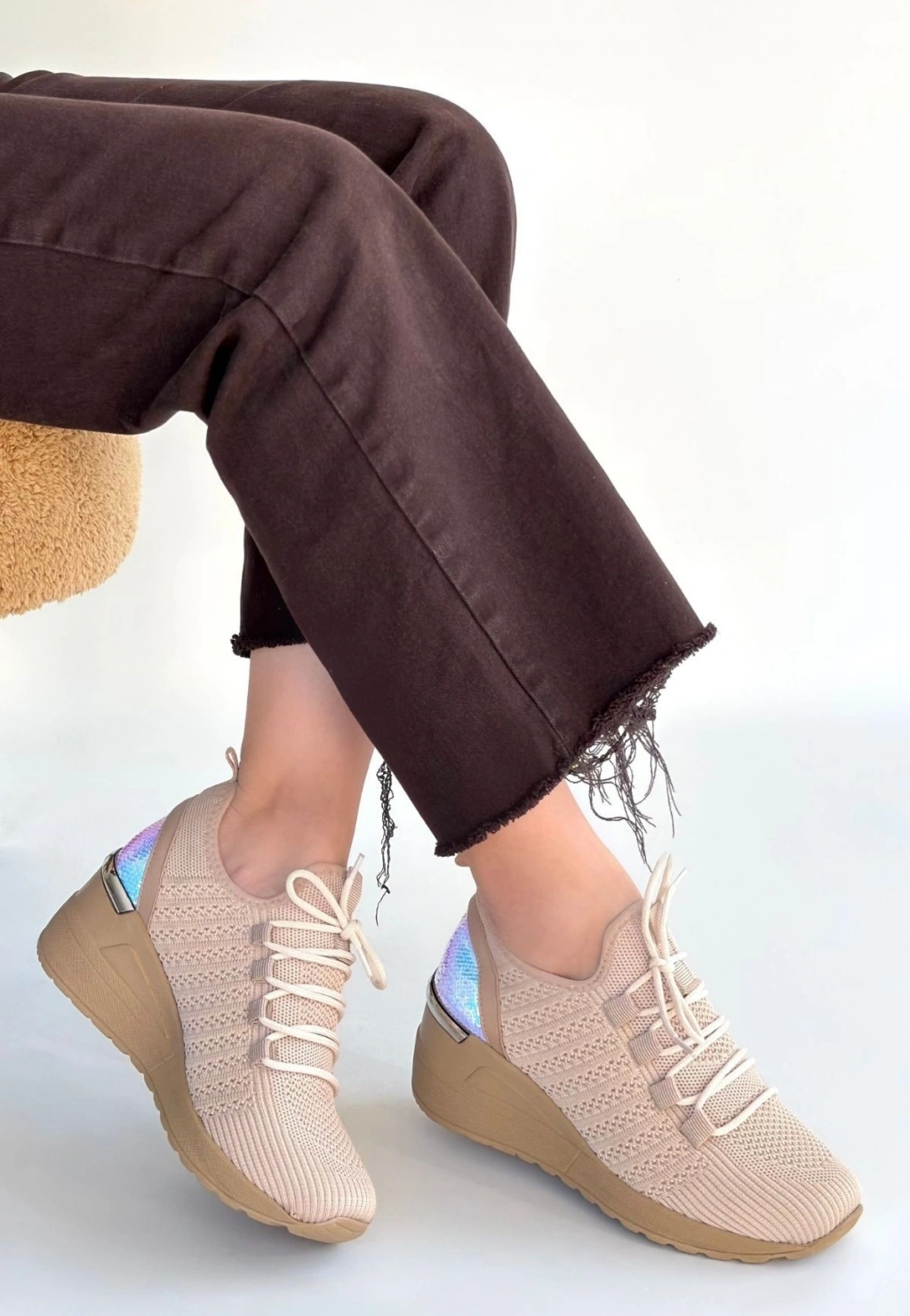 Weor Bej Triko Bağcıklı Spor Ayakkabı