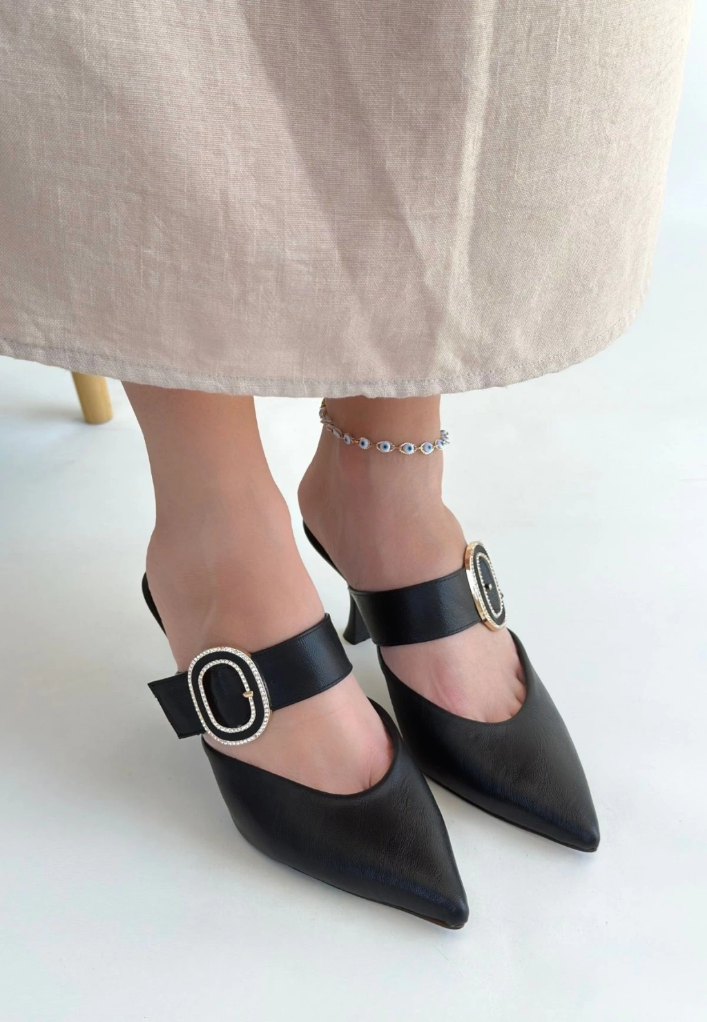 Yote Siyah Cilt Topuklu Terlik